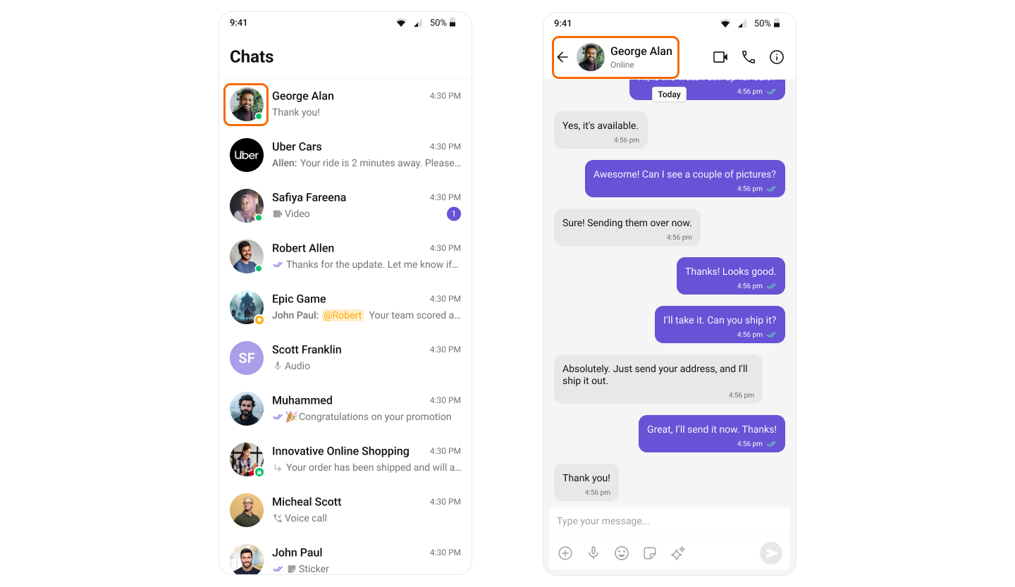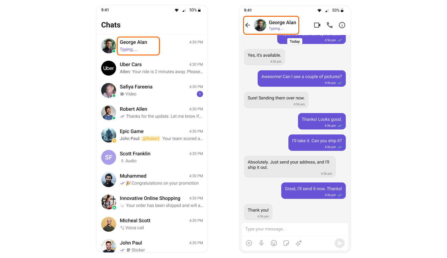 CometChat’s User Presence feature allows users to see whether their contacts are online, offline. This helps users know the best time to initiate a conversation and sets expectations about response times.