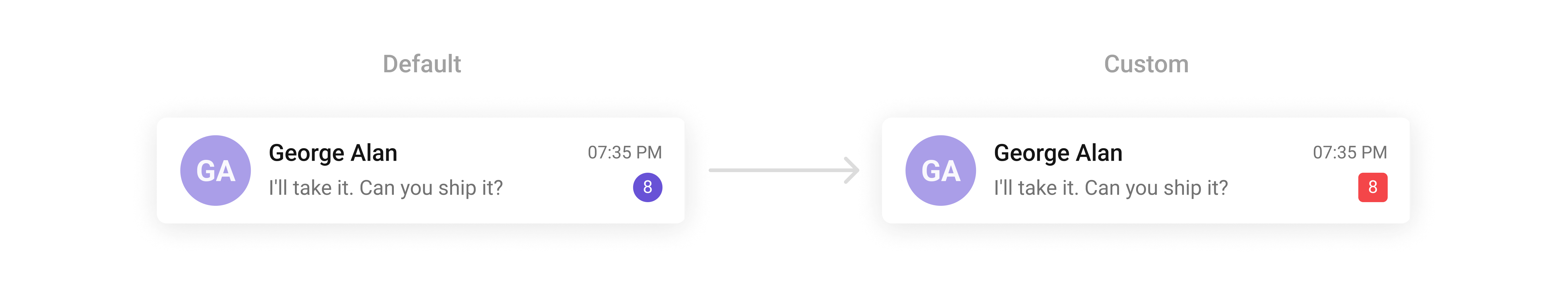 The CometChatBadge Component displays notifications or counts, such as unread messages. It can be styled for background colors, border radius, text size, and colors, allowing you to create visually distinct indicators for different notifications.