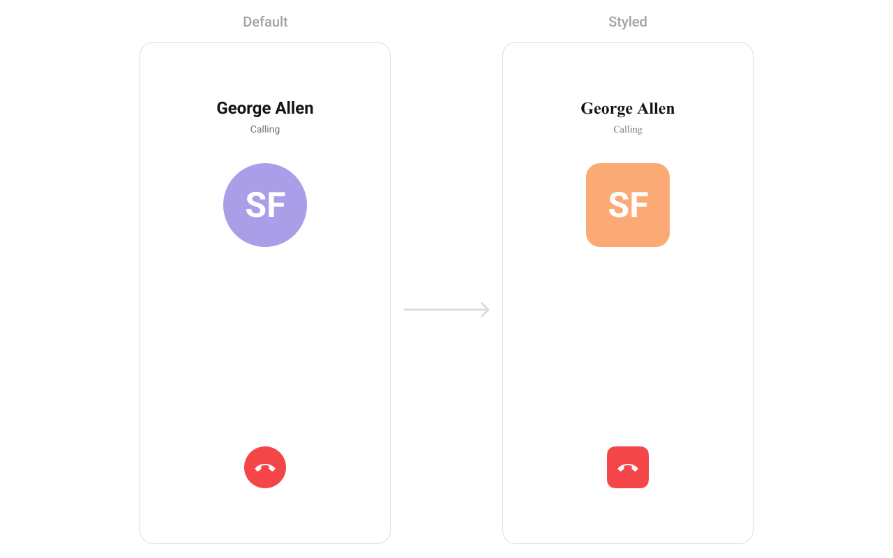 Allows setting a custom list item view to be rendered for each conversation in the fetched call list. Use Cases:- Display the contact’s name in a unique style.