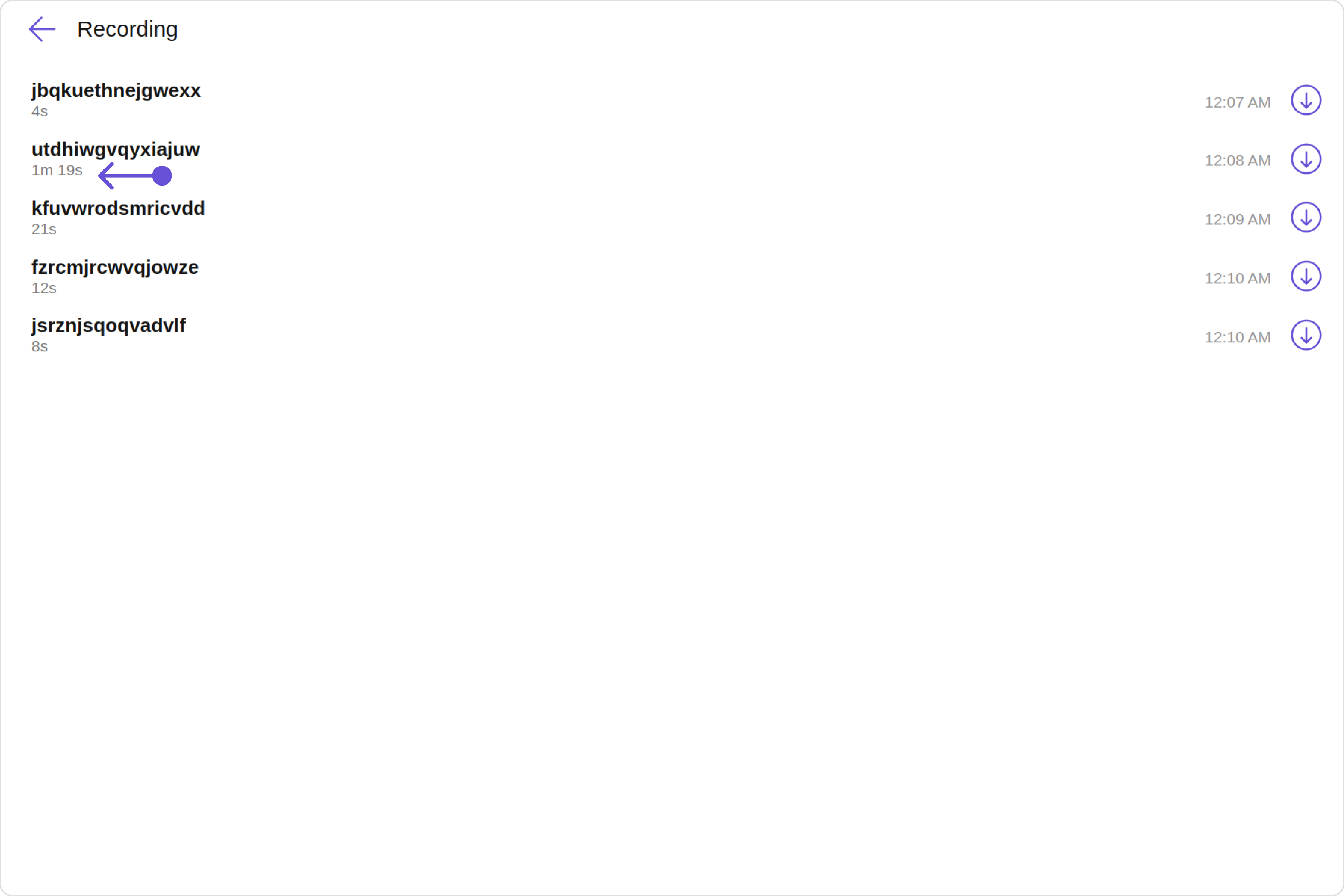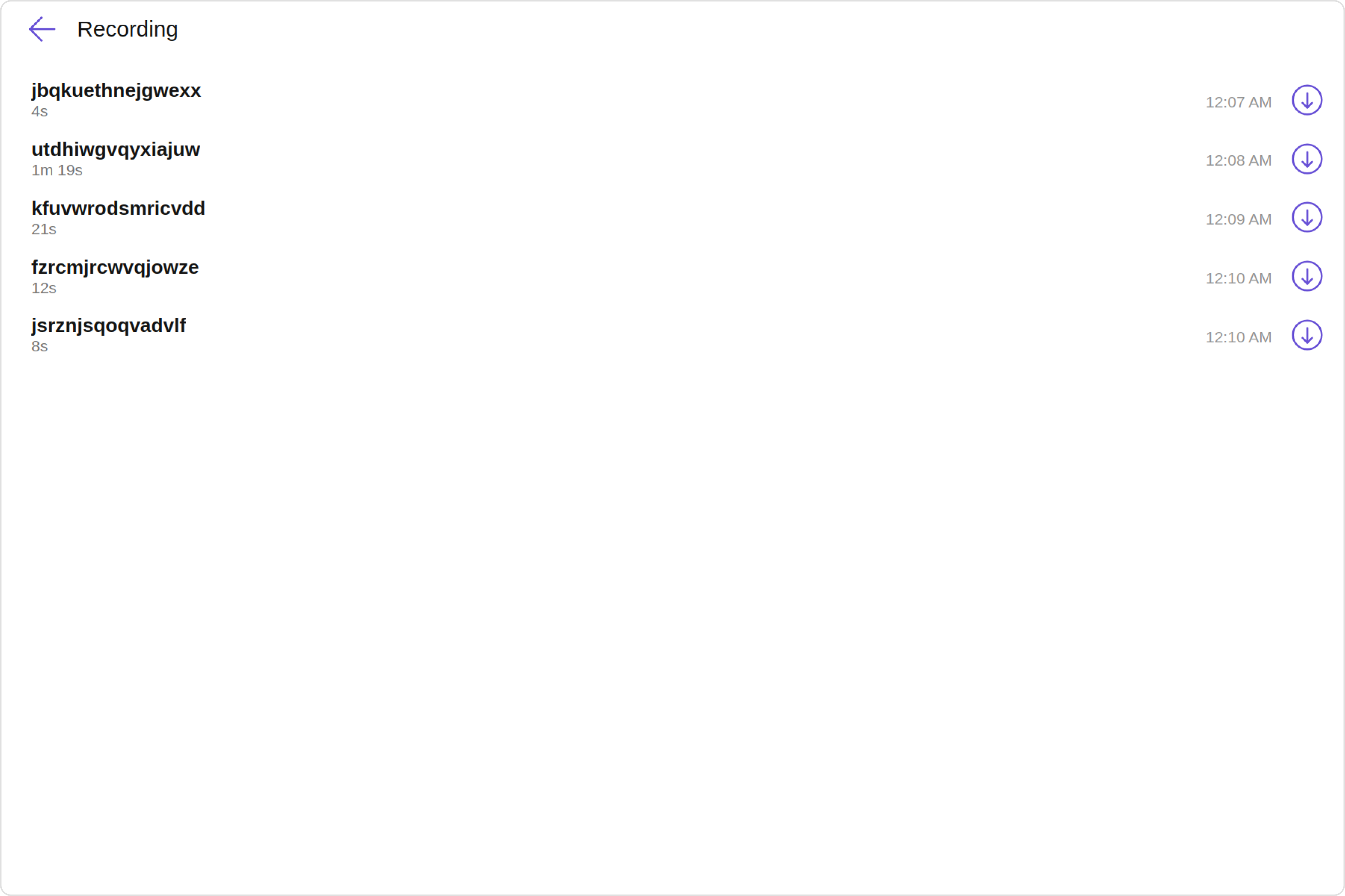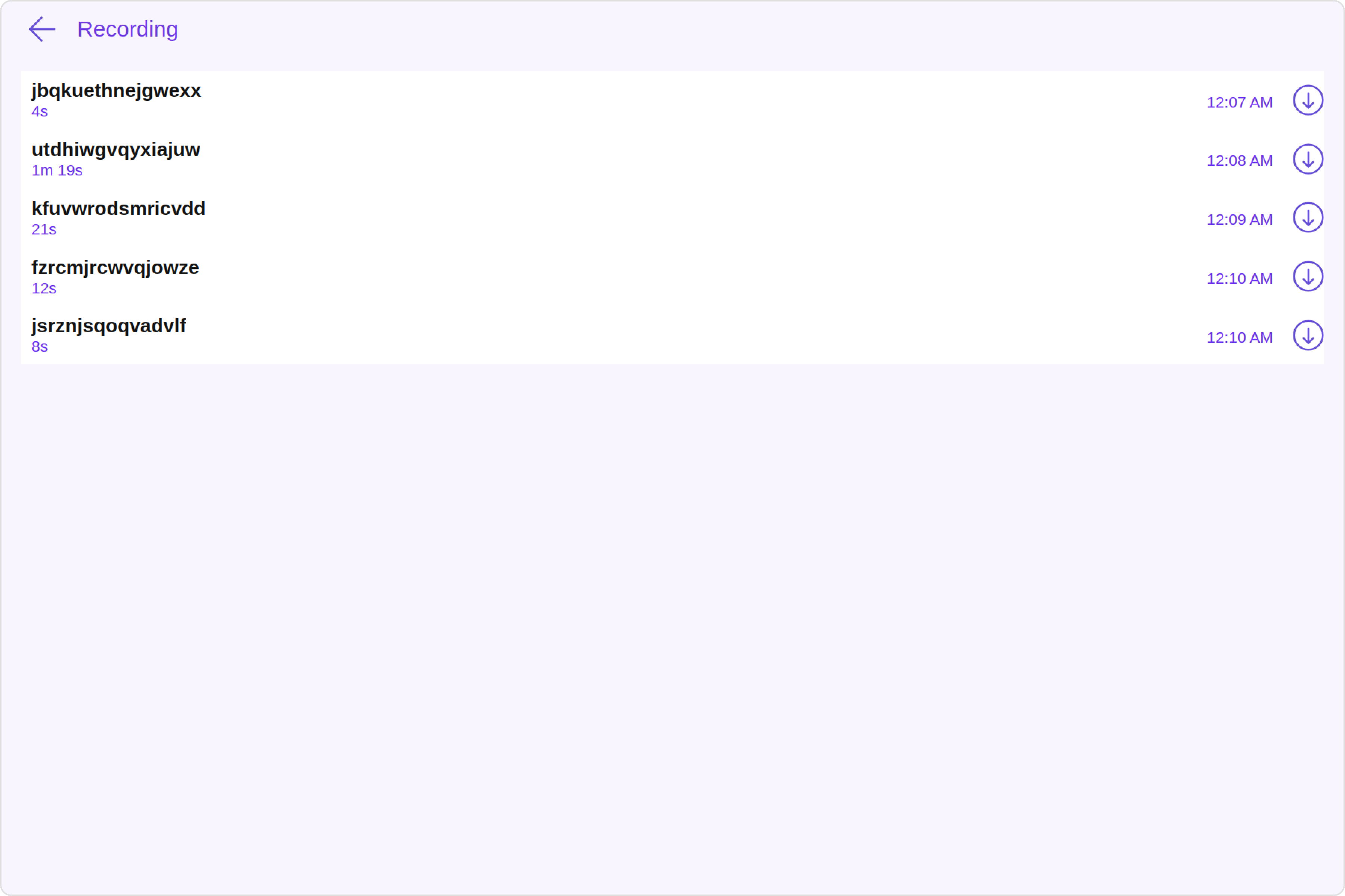 TheCometChatCallLogRecordings is a Component that shows a paginated list of recordings of a particular call. This allows the user to see all the recordings along with the duration as well as a download link using which one can download the recording.